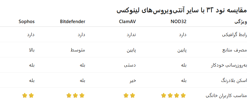 مقایسه نود ۳۲ با سایر آنتیویروسهای لینوکسی